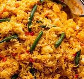Рис басматі зі суміш літніх овочів з індійськими спеціями, ароматною гарам масалою, з бірані масала та гхі(топлене масло)./Basmati rice with mixed summer vegetablesc ooked with Indian spices, aromatic garam masala, biryani masala and gee.